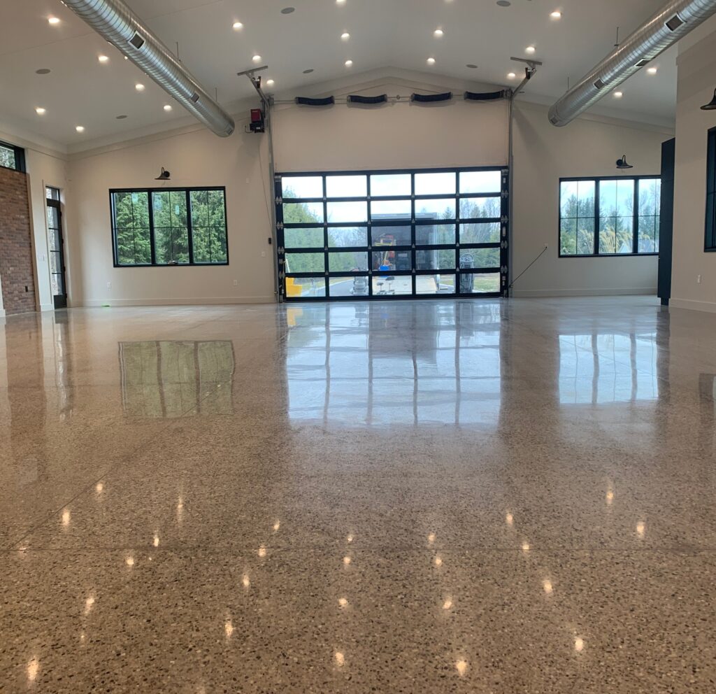 Achieve a contemporary, industrial aesthetic with polished concrete floors. Known for their durability